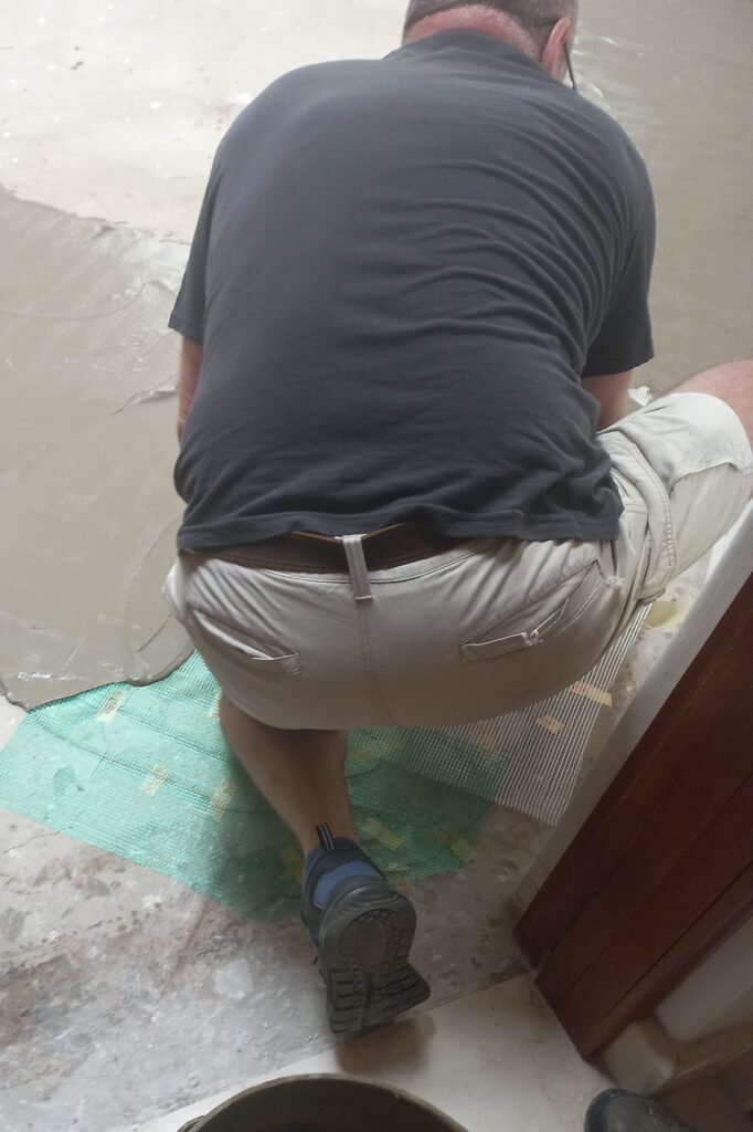 Marking Out Where the Heaters will be InstalledCoating Floor with Key CoatLaying Out the HeaterChasing for Power CablesCovering Heater with Resin MeshScreeding Floor with Tile AdhesiveInstalling ThermostatWiring Thermostat